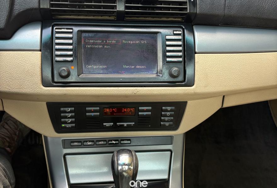 -motor bmw 2.993c.c d 218cv 6 CILINDROS(LA MEJOR MECANICA DE TODOS LOS X5) -cambio automatico tiptronic 4x4 de 6 velocidades con control de descenso ascenso X DRIVE -"m"SPORTPACKET -techo electrico de cristal panoramico ABRIBLE Y ELEVABLE -klimatizador digital bizona a/c -LLANTAS DE ALUMINIO 18" SPORT PACKET -sistema de navegacion grande comand dvd europa -asientos en piel beige -volante deportivo en piel ALCANTARA con sistema multifuncion -velocidad de crucero(tempomat) -ord de abordo -sonido harman kardon -paquete privacidad CORTINAS CRISTALES TINTADOS -interior en aluminio sport -barras en el techo -calefaccion auxiliar estatica WEBASTO -espejos electricos -SENSORES DE APARCAMIENTO DEL Y TRAS -airbags delanteros laterales y de techo -ALARMA ORIGINAL BMW(2XLLAVES) -SE ENTREGA CON ITV RECIEN PASADA -VEHICULO ESPAÑOL NACIONAL USO PRIVADO -RECIEN REVISADO CORREAS AUX NUEVAS -SENSORES DE LUCES Y DE LLUVIA -CORTINAS TRASERA Y LATERALES PAQUETE PRIVACIDAD -4XNEUMATICOS NUEVOS -CARGADOR 6CDS EN MALETERO -ACEPTARIA VEHICULO INFERIOR O MOTO COMO PARTE DE EL PAGO -ASIENTOS ELECTRICOS CON MEMORIAS