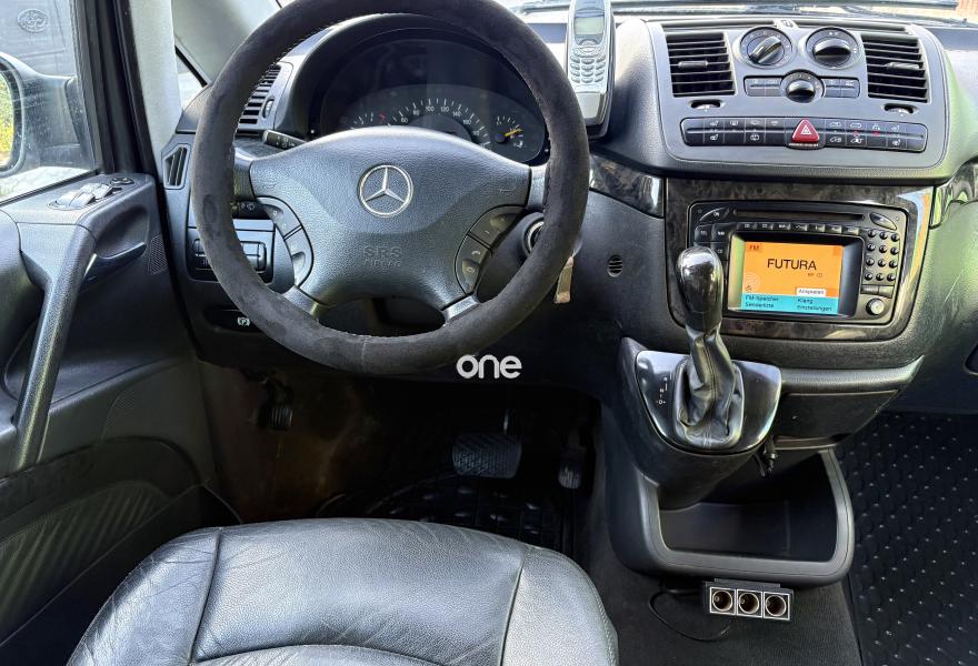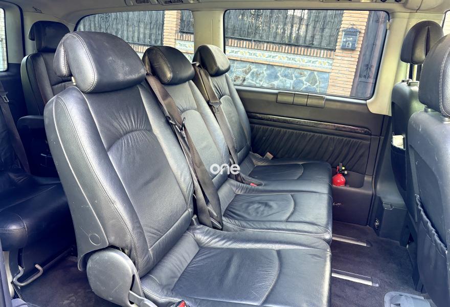-MOTOR MERCEDES BENZ 2.148C.C CDI 150CV -CAMBIO AUTOMATICO -SISTEMA DE NAVEGACION GRANDE COMAND TV -KLIMATIZADOR DIGITAL BIZONA A/C DEL. Y TRAS -LLANTAS DE ALUMINIO ELEGANCE -ASIENTOS EN PIEL NAPPA NEGRA -INTERIOR EN MADERA NEGRA EXCLUSIVE -ASIENTOS CALEFACTABLES -sensores de aparcamiento pARKTRONIC -VOLANTE EN PIEL CON SISTEMA MULTIFUNCION -ASIENTOS GIRATORIOS -VELOCIDAD CRUCERO(TEMPOMAT) -SUSPENSION AUTORREGULABLE AUTONIVELANTE TRASERA -SENSORES DE LUCES Y DE LLUVIA -BARRAS EN EL TECHO -CORTINAS INTERIORES WESTFALIA EDITION -CALEFACCION ESTATICA PROGRAMABLE ESTATICA POR AGUA -CARGADOR DE 6CDS -ORD DE ABORDO -MESA INTERIOR ORIGINAL WESTFALIA posavasos -ELEVALUNAS ELECTRICOS DEL Y TRAS -ALARMA ORIGINAL M-BENZ -ESPEJOS ELECTRICOS PLEGABLES -SONIDO DOLBY ACOUSTIC -AIRBAGS DELANTEROS LATERALES Y DE TECHO -SE ENTREGA CON ITV RECIEN PASADA COMO TURISMO -RECIEN REVISADO COMPLETO ACEITE. MOTOR FILTRO DE ACEITE DE AIRE Y DE COMBUSTIBLE,CORREA. AUXILIAR SINENTBLOCKS BOMBA. DE AGUA. Y. ANTICONGELANTE DISCOS DE FRENO DEL Y TRAS CON PASTILLASD DE FRENO AMORTIGUADORES NUEVOS ORIGINALES M-BENZ ASI COMO ACEITE Y FILTRO DE CAJA DE CAMBIOS. Y GRUPO -DESCUENTO ESPECIAL PARA FAMILIA NUMEROSA. O PERSONAS CON MINUSVALIA -HOMOLOGADA PARA 8XPLAZAS EN DOCUMENTACION-TIENE 7 PLAZAS INSTALADAS -VEHICULO OPTICA Y TECNICAMENTE. PERFECTO!! NO TIENE NI UN SOLO. ROCE NI DESGASTE KM DE AUTOVIA. LARGOS RECORRIDOS -ETIQUETA MEDIOAMBIENTAL B -ACEPTARIA VEHICULO O MOTO INFERIOR COMO PARTE DE EL PAGO -TELEFONO ORIGINAL M-BENZ NOKIA