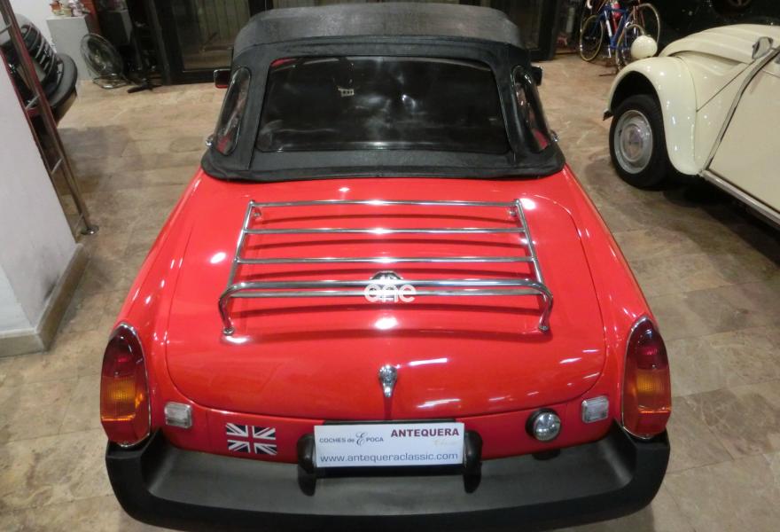 1798 CC., 85 CV, 4 CILINDROS, 4 VELOCIDADES SINCRONIZADAS, CARBURACIÓN WEBER, VERSIÓN AMERICANA GHN5, MOTOR 18GA, SERIE MK4 - MK-IV, CONVERTIBLE, 2 PLAZAS, COLOR FLAME RED - CÓDIGO BLVD61, PARAGOLPES DE GOMA, VOLANTE DE MADERA MG, LLANTAS DE ALEACIÓN, FRENOS DE DISCO DELANTEROS, RADIO-USB-MP3, CAPOTA DE VINILO, COVER TONNEAU A ESTRENAR, PARRILLA PORTAEQUIPAJES TRASERA, RESTAURACIÓN ANTIGUA, MUY BUEN ESTADO, CORRECTO FUNCIONAMIENTO, MATRÍCULA HISTÓRICA, ITV CADA 2 AÑOS, DOCUMENTACIÓN e ITV AL DÍA. MÁS INFORMACIÓN EN: https://antequeraclassic.com/catalogo/mg-mgb-1800-roadster-mk4