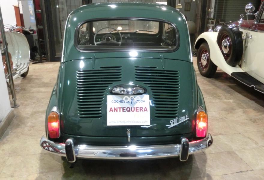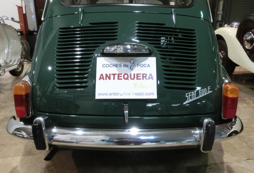 767 CC., 25 CV, 4 CILINDROS, 4 VELOCIDADES, CARBURADOR WEBER, VERSIÓN SEISCIENTOS E (600E), COLOR VERDE INGLÉS SEAT 384 IVANOW, MATCHING NUMBERS, NÚMEROS COINCIDENTES DE BASTIDOR Y MOTOR, BASTIDOR SERIE "BE", MOTOR SERIE "DA", TAPICERÍA COMBINACIÓN TELA - POLIPIEL, CLAUSOR ANTI-ROBO, CORTINILLAS ANTI LLUVIA/FRÍO EN MOTOR, CAJA HERRAMIENTAS ORIGINAL SEAT, 4 PLAZAS, LIBRO DE INSTRUCCIONES ORIGINAL, RECIENTEMENTE RESTAURADO, GRAN NIVEL DE CONSERVACIÓN, HISTORIAL RECIENTE DE MANTENIMIENTO, MUY BUEN ESTADO, CORRECTO FUNCIONAMIENTO, MATRÍCULA ORIGINAL (GE), DOCUMENTACIÓN e ITV AL DÍA. MÁS INFORMACIÓN EN: https://antequeraclassic.com/catalogo/seat-600e-1972-verde-ingles